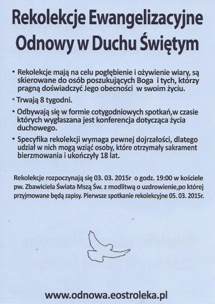Grupa Odnowy w Duchu Świętym "Święta Rodzina" gorąco zaprasza wszystkie małżeństwa sakramentalne i osoby zainteresowane do udziału w: