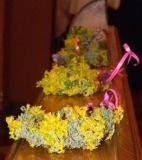 "Ostatniego dnia oktawy, w czwartek, kapłan święci wianki sporządzone z pierwszych kwiatów i ziół leczniczych. Są one symbolem ludzkiej pracy, a jednocześnie utożsamiają dar Boży służący ludziom i wszelkim stworzeniom. Podczas święcenia ziół wznoszone są modlitwy o opiekę nad polami i o dobre zbiory. Wianki sporządzane są zazwyczaj z rumianku, róż, mięty, rozchodnika, macierzanki, kopytnika, grzmotnika, jaśminu. Dziś z powodu zastąpienia niegdyś powszechnych ziół dostępnymi roślinami ogrodowymi i kwiatami cechy uzdrawiające wianka zdecydowanie się ograniczyły. Zatyka się je za obrazy świętych, nad oknami i w sieni. Do tej pory przypisuje się wiankom leczniczą moc i działanie ochronne. Zarówno poświęcone ziele z wianków jak i brzozowe gałązki wzięte z ołtarzy miały chronić przed burzą, uderzeniami pioruna i pożarów, a także przed gradobiciem i szkodnikami na polach.